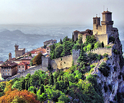 Stato indipendente che sorge sul Monte Titano e considerata la più antica Repubblica del mondo. Dal 2008 il centro storico di San Marino e il Monte Titano sono stati inseriti dall'UNESCO tra i patrimoni dell'umanità. Oltre per la storia e gli antichi monumenti che si possono visitare, San Marino è famosa anche per lo shopping, grazie ai numerosi outlet, centri commerciali e botteheghe artigianali.
